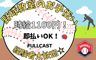 野球教室のお手伝い☆時給1100円+交通費500円/即払いOK