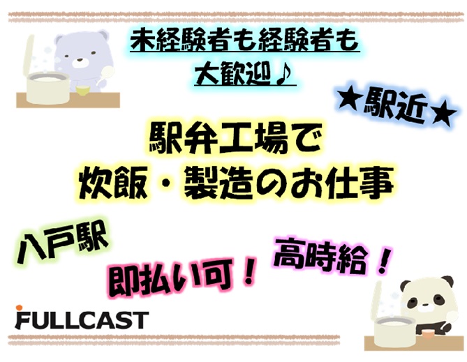 八戸駅から徒歩3分!炊飯・容器洗浄のお仕事!