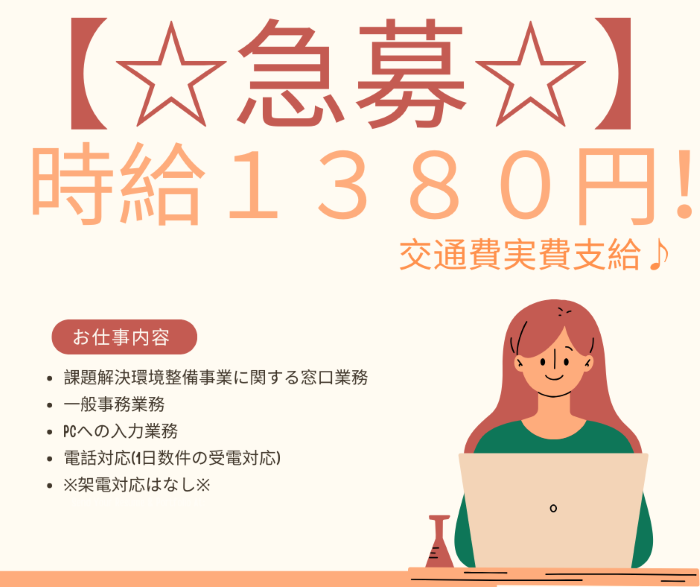 【急募!】高時給!課題解決環境整備事業に関する事務