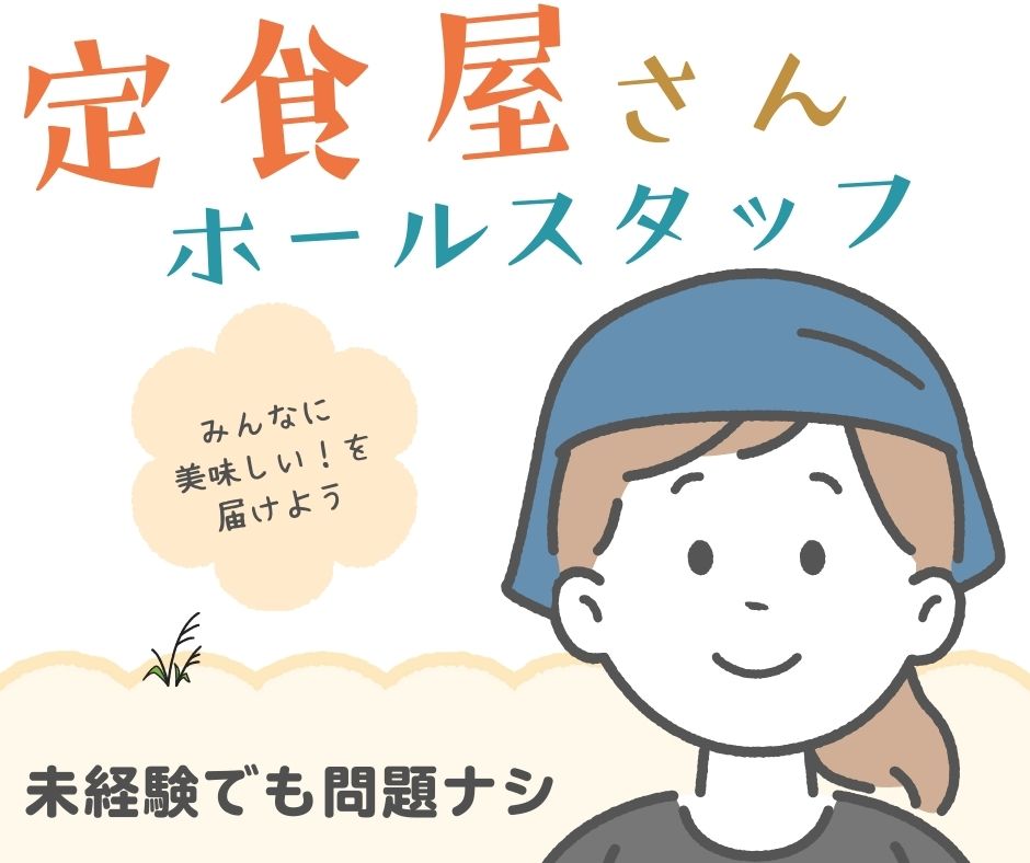 定食屋さんでの接客業務(レジ・配膳・下げ膳・洗い物)などです♪