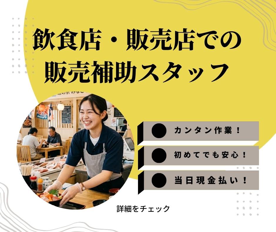 【当日払】飲食店・販売店での販売補助スタッフ(屋外)@1050