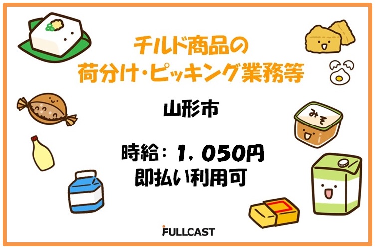 $倉庫内!チルド食品仕分けのおしごと【山形市】