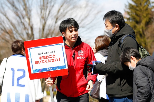 スタジアムでのトイレやイベントの場所の案内や、...