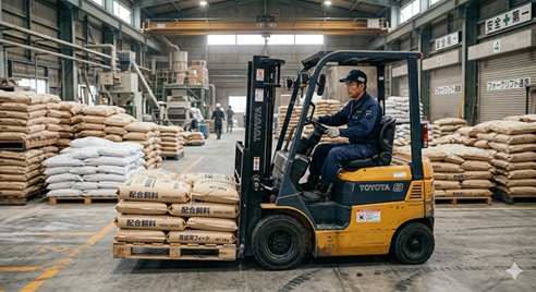 フォークリフトでの飼料運搬業務、その他付随業務