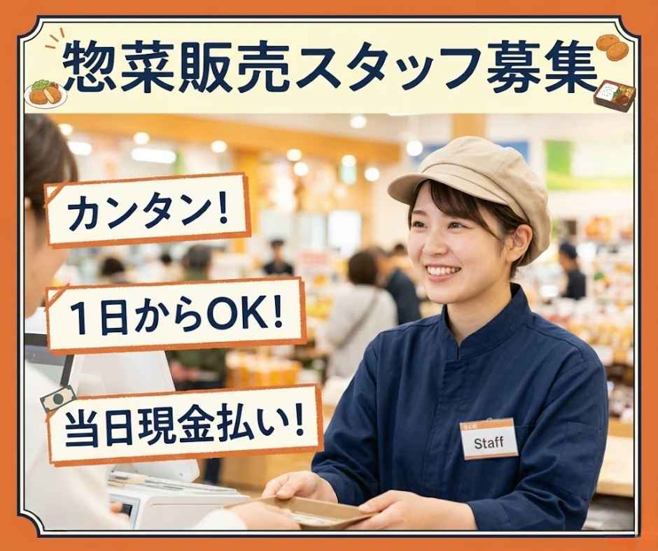 単発 短期 スポット 紹介 当日現金 レジ 接客 販売 惣菜 コロッケ メンチカツ 道の駅 補助 栃木 さくら市 車通勤