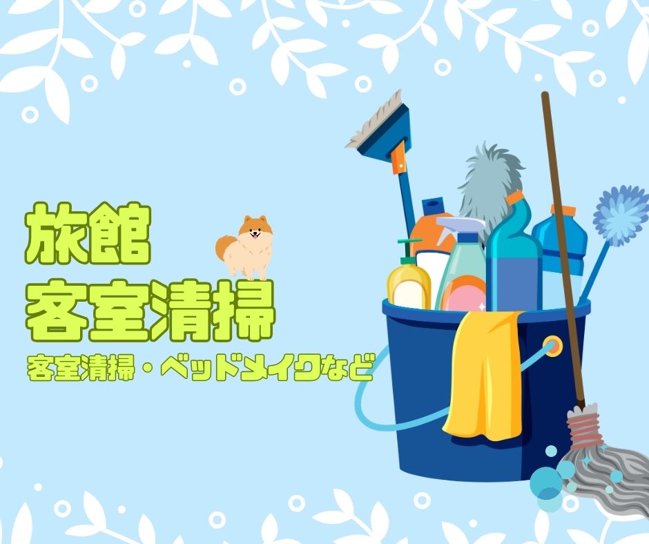 ペットと泊まれる全室露天風呂付の旅館内での客室清掃業務