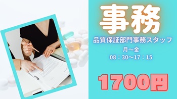 品質保証部門での事務スタッフ募集!高時給1,700円♪