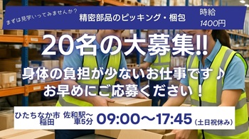 ★即払あり★時2000+交!搬入出業務【ひたちなか市】