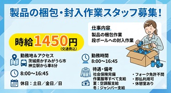 【高時給1450円】未経験OK!梱包・封入作業!