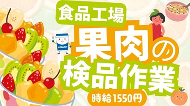 乳製品に使用されるフルーツ果肉の検品作業と、簡単な工場...