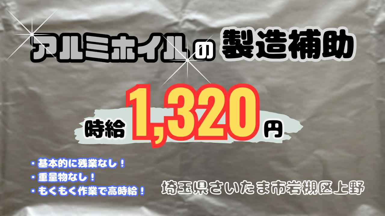 【RW】高時給1320円/アルミホイル製造補助作業【岩槻区】