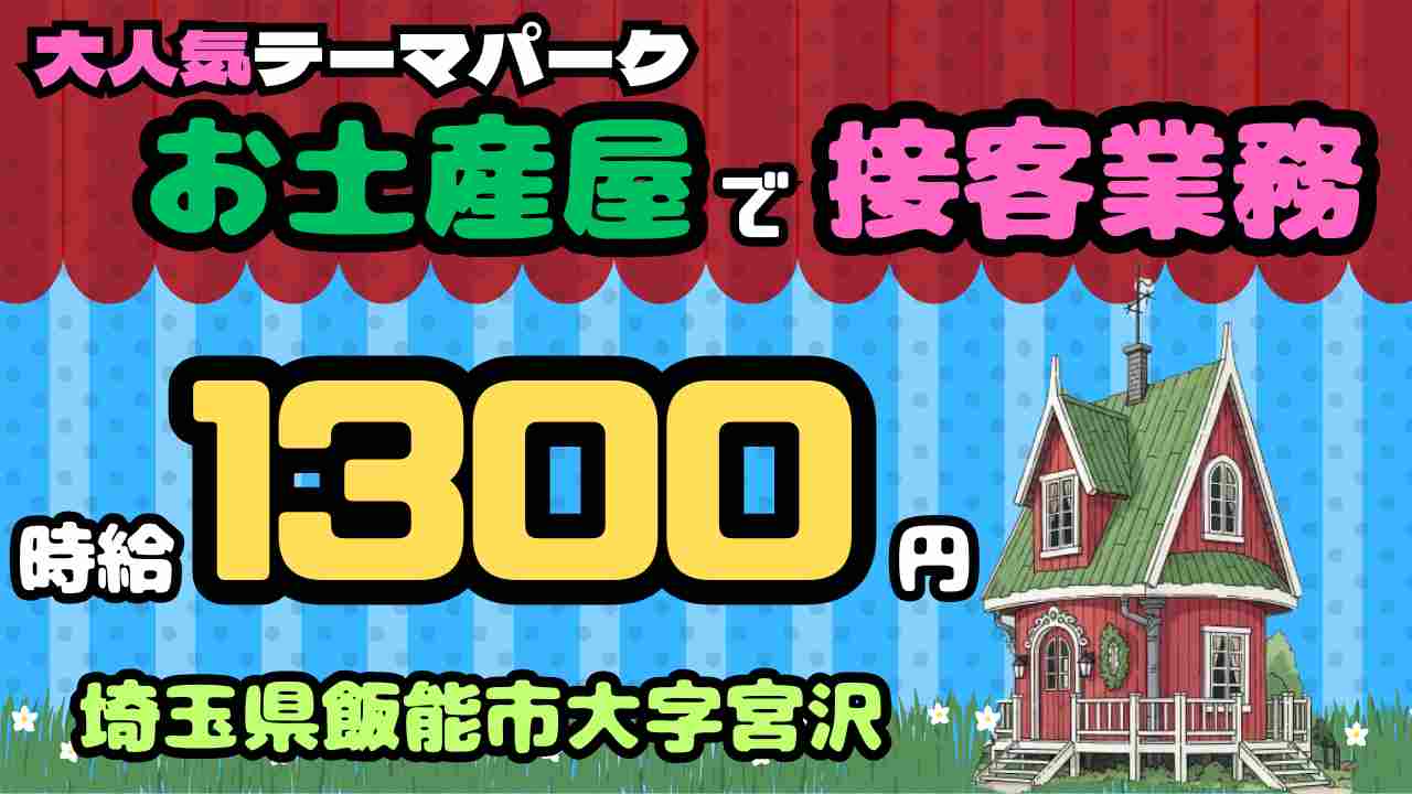 【有名テーマパークで販売業務】時給1300円《飯能市》