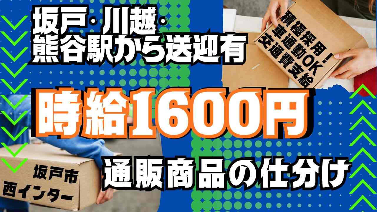 破格時給1600円!!通販商品ピッキング【坂戸市/3駅送迎有】