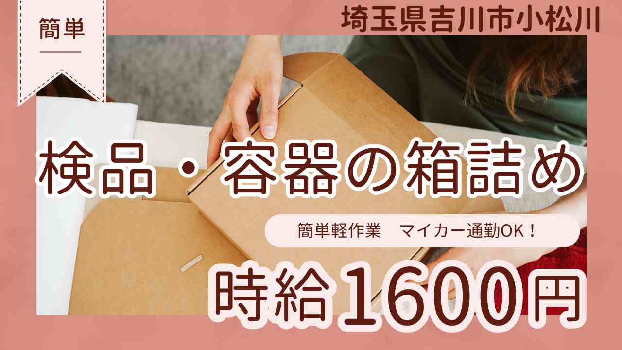 $【吉川市】時給1300円☆即払☆化粧品の箱詰め・梱包