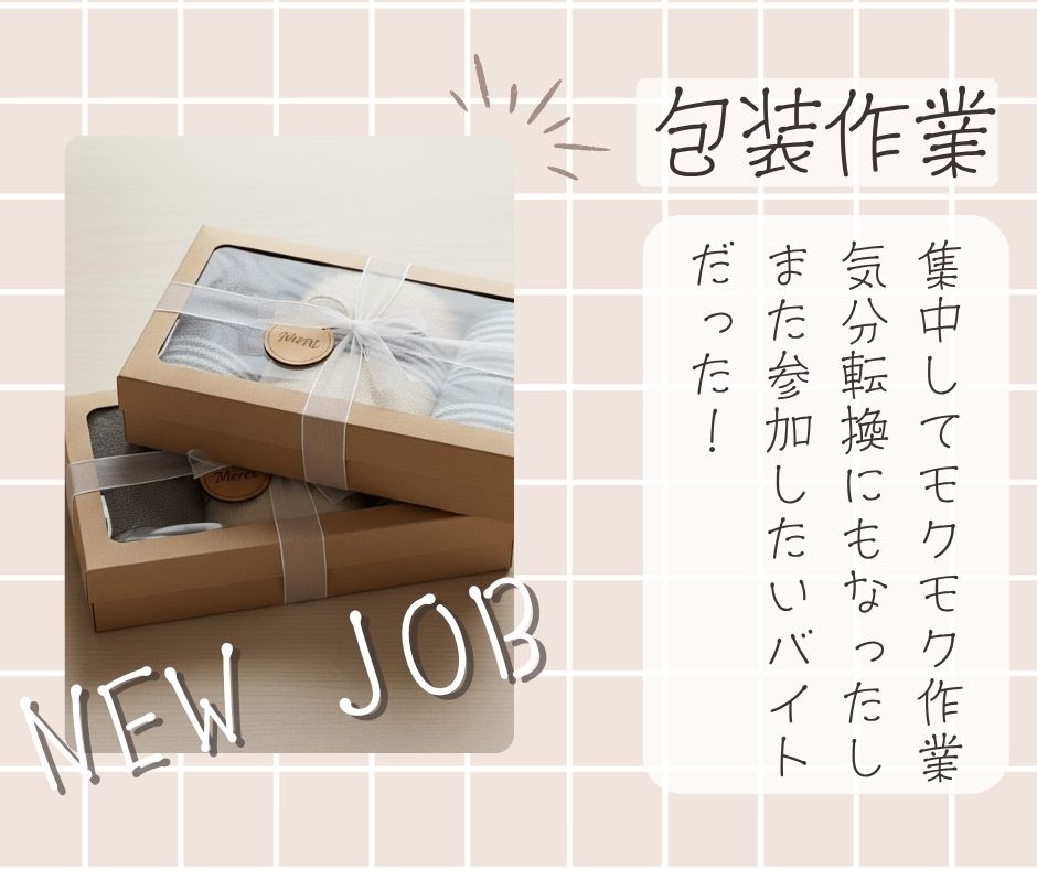 【作業内容】タオル等のギフト商品のラッピング・デパート包装作業・その他付帯作業になります