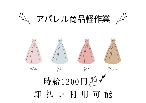 ・作業の進捗状況によって、残業可能性あり(給与は実働時間分お支払いいたします)