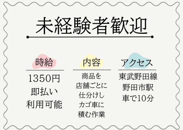 倉庫内での仕分け・梱包 未経験者歓迎!