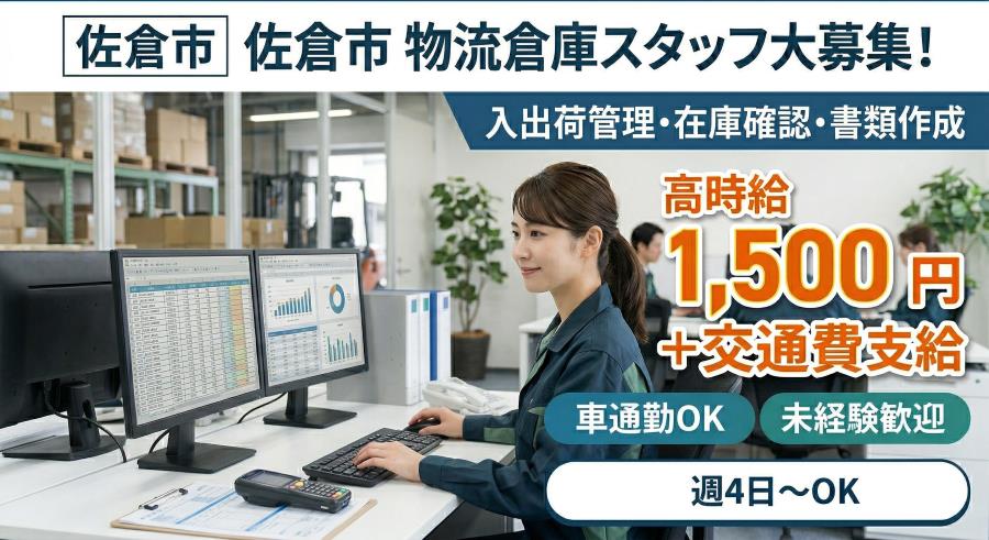 《佐倉市》物流倉庫で在庫管理・PC作業!1500円+交♪