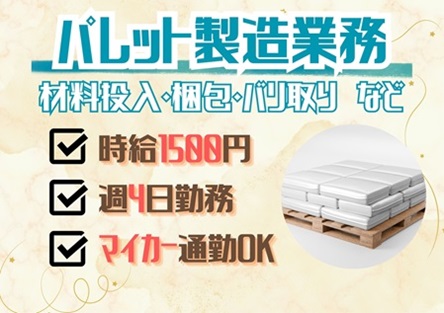 ◎未経験大歓迎! ◎パレットの製造作業! ◎車通勤OK