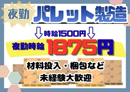 【富津市】時給1500円→夜勤1875円◇パレット製造【夜勤】