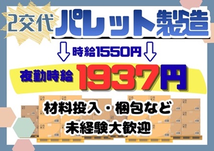 【富津市】時給1550円→夜勤1937円◇パレット製造【2交代】