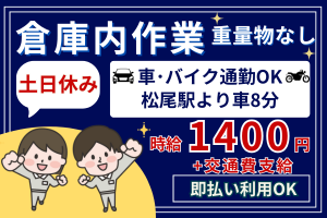 重量物なし!未経験OK【車通勤可/松尾駅】時給1400円+交★