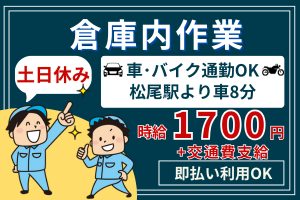 高時給1700円+交!【車通勤可/松尾駅】即払いOK!倉庫作業