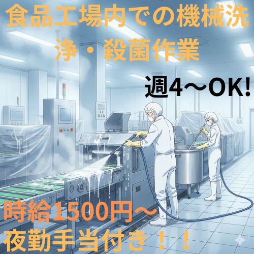 ♪食品工場内での機械洗浄・殺菌作業のお仕事♪