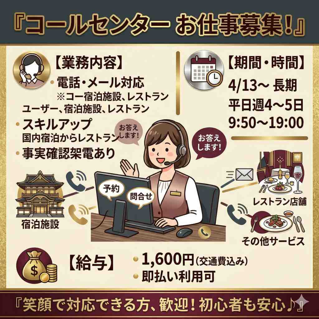 - 1日のみの短期のお仕事