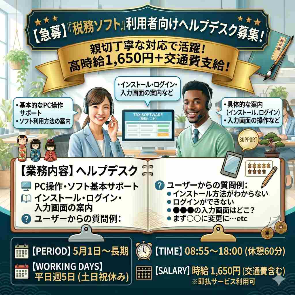 ≪高時給1650円≫未経験歓迎のヘルプデスク業務