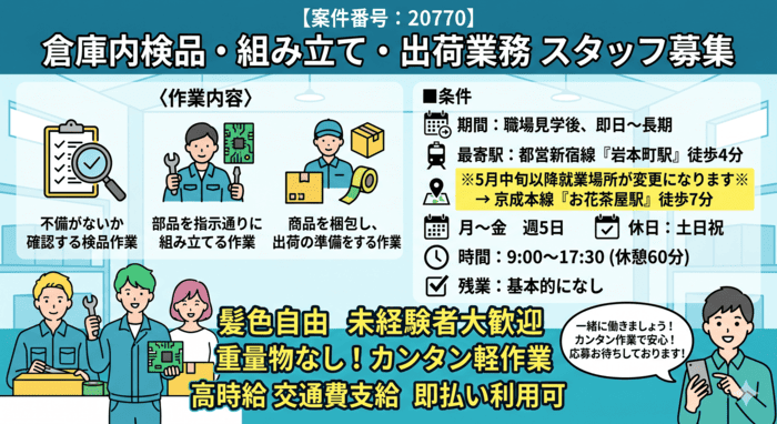 【秋葉原駅】2時間待機業務★23区内に移動可能性有