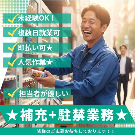 【急募】時給1300円+交通費支給!即払い有!自動販売機の補充及び駐禁対策のお仕事です♪