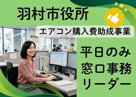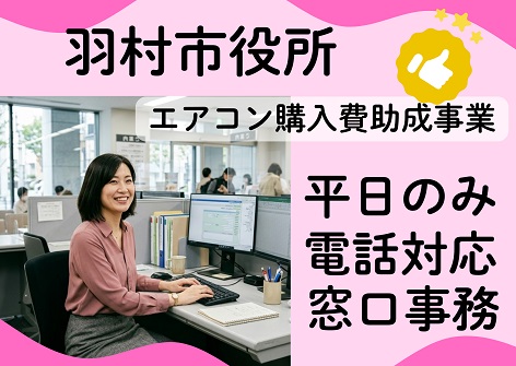 【羽村市役所】5月~8月の短期!時給1300円の窓口事務!エアコン購入費助成事業スタッフ!平日のみ