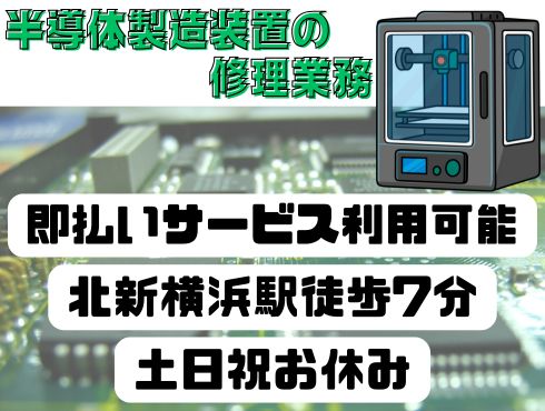 北新横浜徒歩7分/時給1500円+交!半導体製造装置の修理