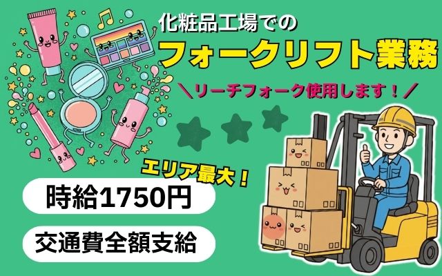 【エリア最大時給1750円】◆フォークリフト案件*即払い利用OK