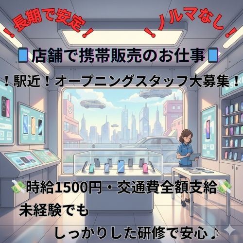 【未経験可】時1500円+交通費支給!携帯販売の接客業務