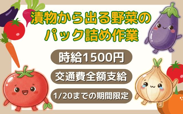 【綾瀬】野菜パック詰め*高時給♪交通費支給×即払い◎
