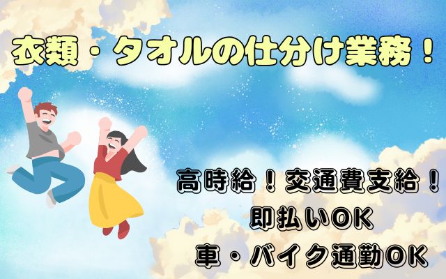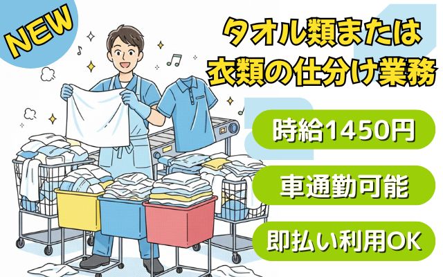 $車OK【即払】時1350+交1000/開成駅/タオル・衣類の仕分け