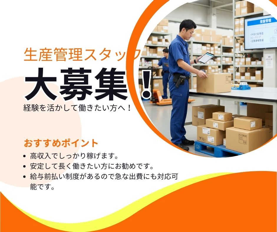 【南アルプス市】 【想定月収29万】生産管理業務