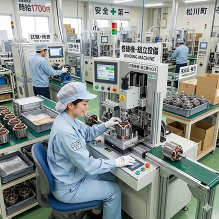 【時給1700円】モーター部品の機械組立・試験/松川町
