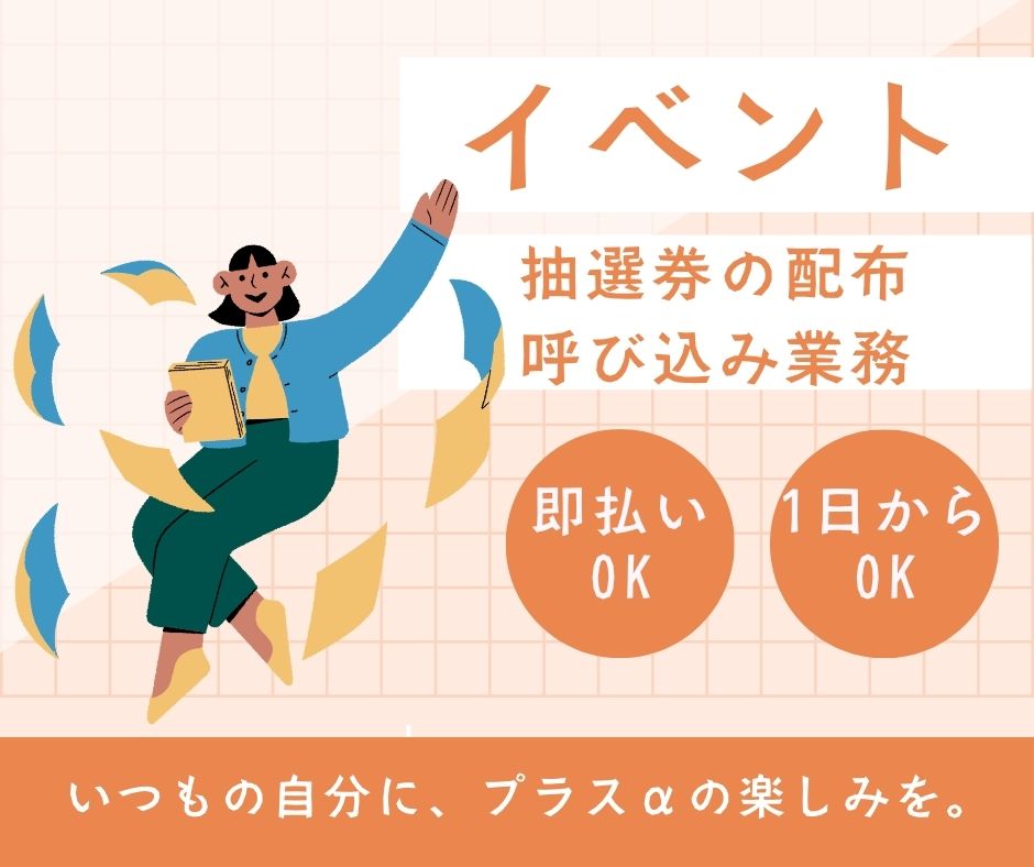 店舗出入り口での抽選券を配布・呼び込みをしていただくお仕事です