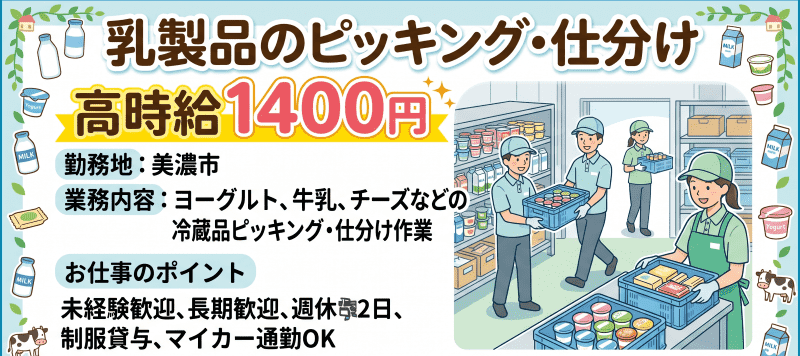 【美濃市】高時給!乳製品の簡単ピッキング!