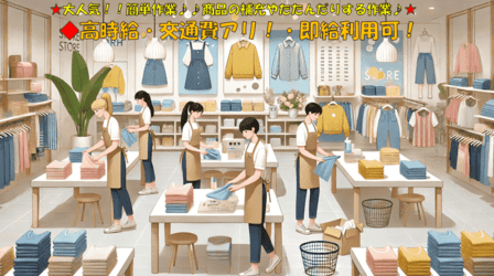 商品補充・バックヤード整理・店頭での接客・声掛けなどのお仕事です!