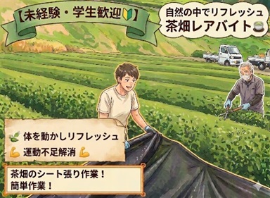■茶畑管理(茶畑のシート張り作業、清掃、ネットの搬入や積込み)
