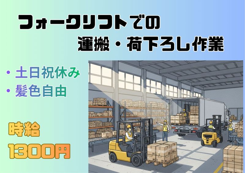駅チカ徒歩5分☆髪色・髪型自由♪フォークリフトでの運搬、荷下ろし