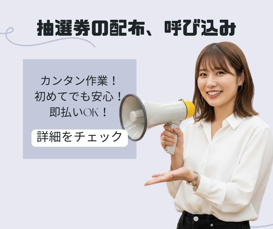 店舗出入り口での抽選券を配布・呼び込みをしていただくお仕事です