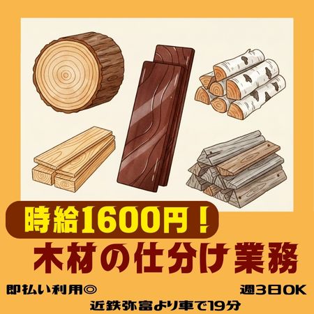 ◎未経験歓迎☆高時給1600円・木材の仕分け業務!