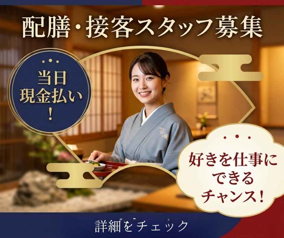 【当日支払】時1500円交500円!料亭での配膳・接客