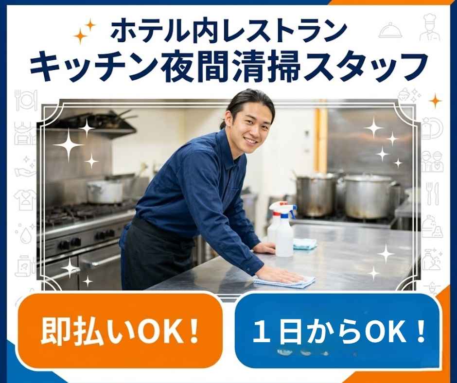 【清掃】《即払導入予定》時1400/ホテルレストランでのキッチン清掃