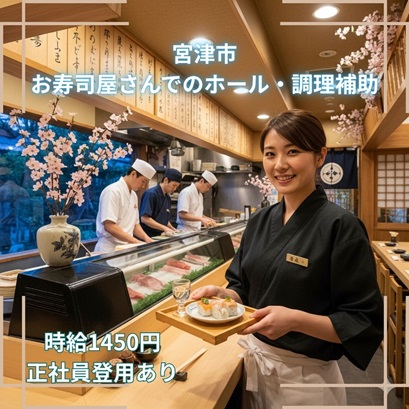 【時給1450円】お寿司屋さんでのホール・調理補助